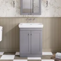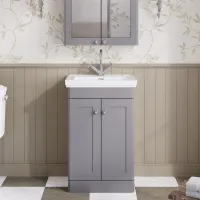 Nuie Classique 500mm Satin Grey Floor Standing 2 Door Vanity Unit With Basin