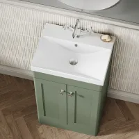 Nuie Classique 500mm Satin Green Floor Standing 2 Door Unit with Basin