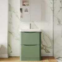 Nuie Arno 800mm Satin Green Floor Standing 2-Door Vanity Unit With Basin