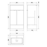 Nuie Arno Compact 600mm Floor Standing 2-Door Vanity Unit With Basin