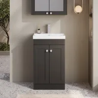 Nuie Arno 600mm Anthracite Woodgrain Floor Standing 2-Door Vanity Unit with Basin
