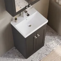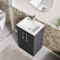 Nuie Arno 600mm Anthracite Woodgrain Floor Standing 2-Door Vanity Unit With 1 Tap Hole Basin
