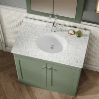 Nuie Arno 800mm Satin Green Floor Standing 2-Drawer Vanity Unit with Thin-Edge Basin