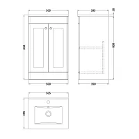 Nuie Arno 500mm Floor Standing 2 Door Vanity Unit Including Basin