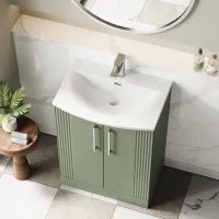 Nuie Deco 600mm Satin Green Floor Standing 2-Door Vanity Unit with Basin With Chrome Handles