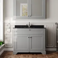 Hudson Reed Old London 1200mm Storm Grey Floor Standing Vanity Unit With 3 Tap Hole Grey Marble Top Basin