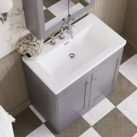 Hudson Reed Old London 800mm Storm Grey Floor Standing 2 Door Vanity Unit With 3 Tap Hole Grey Marble Top Basin