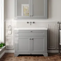 Hudson Reed Old London 1020mm Storm Grey Floor Standing 2 Door Vanity Unit With White Marble Top Basin & 1 Tap Hole