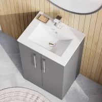 Nuie Deco 500mm Satin Grey Floor Standing 2 Door Vanity Unit & Basin With Handles