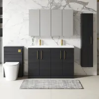 Nuie Arno 1200mm Charcoal Black Floor Standing 4 Door Double Basin Vanity Unit