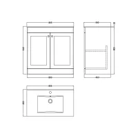 Lille 600mm Floor Standing 2-Drawer Vanity with Basin - 0 Tap Hole