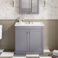 Nuie Classique 800mm Satin Grey Floor Standing 2 Door Vanity Unit with 3 Tap Hole Basin