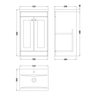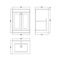 Nuie Classique 500mm Floor Standing 2 Door Vanity Basin Unit With 3 Tap Hole Basin