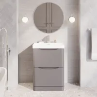 Nuie Lunar 600mm Satin Grey Floor Standing 2 Drawer Vanity Unit With Thin Edge Ceramic Basin