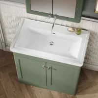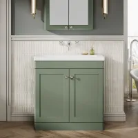 Nuie Classique 800mm Satin Green Floor Standing 2-Door Vanity Unit with Basin