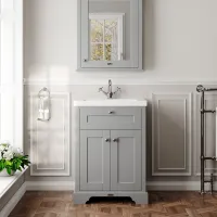 Hudson Reed Old London Traditional 600mm Storm Grey 2-Door Floor Standing Vanity Unit With Fireclay Basin
