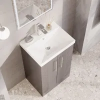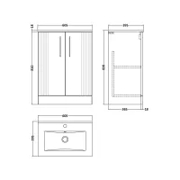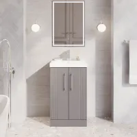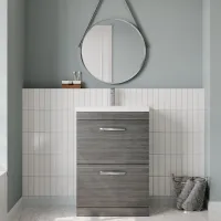 Nuie Arno 600mm Satin Grey Floor Standing 2 Drawer Vanity Unit & Basin With Handles