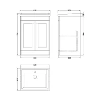 Classique 600mm Floor Standing 2-Door Vanity with Basin - 0 Tap Hole