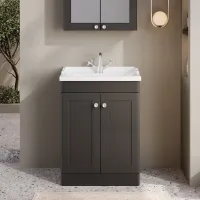 Nuie Classique 600mm Traditional Soft Black Floor Standing 2 Door Vanity Unit With 1 Tap Hole Basin