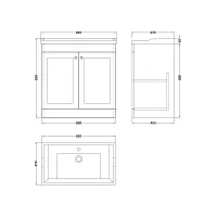 Classique 800mm Floor Standing 2-Door Vanity with Basin - 0 Tap Hole