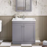 Nuie Classique 820mm Satin Grey Floor Standing 2 Door Vanity Unit with 1 Tap Hole Basin