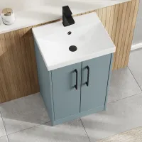 Nuie Classique 600mm Satin Green Floor Standing 2 Door Vanity Unit with Basin, 1 Tap Hole & Soft Close Doors
