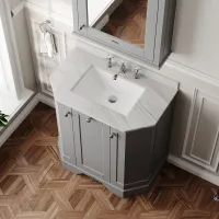 Hudson Reed Old London 786mm Storm Grey Floor Standing 3 Door Vanity Unit With Grey Marble Top Basin