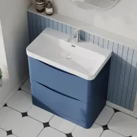 Nuie Lunar 800mm Satin Blue Floor Standing 2 Drawer Vanity Unit With Ceramic Basin