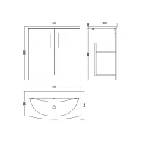 Nuie 800mm Satin Grey Floor Standing 2 Door Vanity Unit with Basin