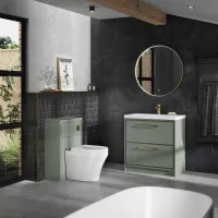 Hudson Reed Lille 630mm Fern Green Floor Standing 2-Drawer Vanity Unit With 3 Tap Hole Basin Fully Assembled