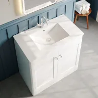 Nuie Classique 800mm Satin White Floor Standing 2-Door Vanity Unit with Basin, 1 Tap Hole, Soft Close