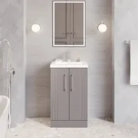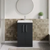 Nuie Arno Compact 600mm Floor Standing 2-Door Vanity Unit With Basin