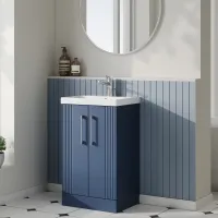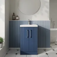 Nuie 500mm Satin Blue Floor Standing 2 Door Vanity Unit with Basin & Chrome Handles