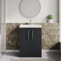 Nuie Athena 600mm Charcoal Black Floor Standing 2 Door Vanity Unit with Mid-Edge 1 Tap Hole Basin