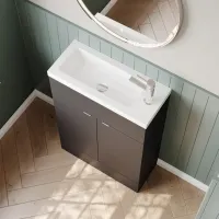 Hudson Reed Fusion 600mm Charcoal Black Floor Standing 2 Door Vanity Unit With Basin