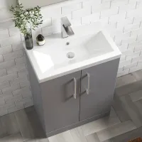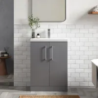 Hudson Reed Fusion 600mm Gloss Grey Floor Standing 2 Door Vanity Unit & Basin