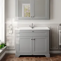 Hudson Reed Old London 1000mm Storm Grey Floor Standing 2 Door Vanity Unit With 1 Tap Hole Ceramic Basin