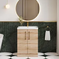 Nuie 600mm Bleached Oak 2-Door Floor Standing Vanity Unit With Polymarble Basin