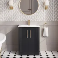 Nuie 600mm Soft Black Part Fluted Floor Standing 2-Door Vanity Unit with Basin & Chrome Handles