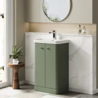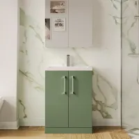 Nuie 600mm Satin Green Floor Standing 2-Door Vanity Unit With Polymarble Basin