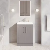 Nuie 600mm Satin Grey Floor Standing 2-Door Vanity & Basin With Chrome Handles