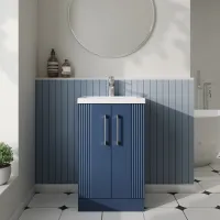 Nuie 500mm Part Fluted Satin Blue Floor Standing 2 Door Vanity Unit With Basin & Chrome Handles