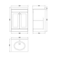 Nuie Arno Compact 600mm Floor Standing 2 Door Vanity Unit with 1 Tap Hole Basin