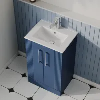 Hudson Reed Fluted 600mm Floor Standing 2-Door Vanity Unit With Basin