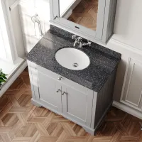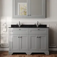 Hudson Reed Old London 1220mm Storm Grey Floor Standing 4 Door Vanity Unit With Black Marble Double Basin