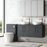 Nuie Arno 1200mm Soft Black 2 Door Wall Hung Vanity Unit With Worktop