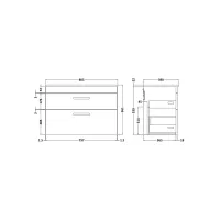 Nuie Athena 800mm Wall Hung 2 Drawer Vanity Unit With Worktop