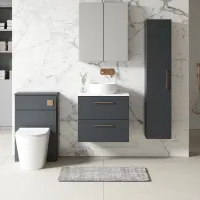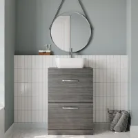 Nuie 600mm Anthracite Woodgrain Floor Standing 2 Drawer Vanity Unit with Worktop and Handles
