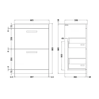 Nuie 600mm Wall Hung 2-Drawer Vanity Unit With Laminate Worktop