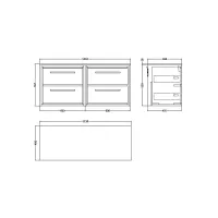 Nuie 1200mm Satin Grey Wall Hung 4-Drawer Vanity Unit Including Laminate Worktop